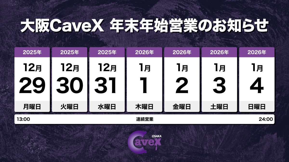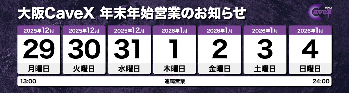 大阪 CaveX 開幕出版日期 - 2025.01.01 繼上野洞窟和新宿 CaveX 之後,大阪洞窟和大阪 CaveX 將於 2025 年 1 月 10 日 17:00 同時開幕。